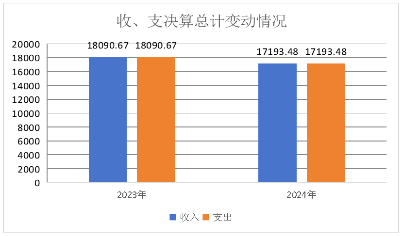 2024年度收、支总计均为17193.48万元。与2023年度相比,收、支总计各减少897.19万元,下降4.96%。主要变动原因是特困人员救助供养支出减少,殡葬和养老基建项目减少,故支出减少。