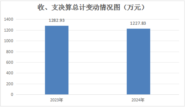 2024年度收、支总计均为1227.83万元。与2023年度相比,收、支总计各减少55.10万元,下降4.29%。主要变动原因是2024年人员减少,经费减少。