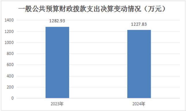 2024年度一般公共预算财政拨款支出1227.83万元,占本年支出合计的100%。与2023年度相比,一般公共预算财政拨款支出减少55.10万元,下降4.29%。主要变动原因是2024年人员减少,经费减少。