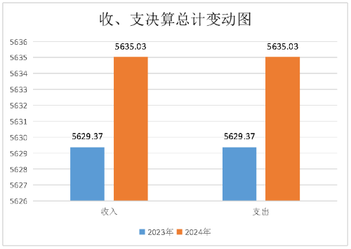2024年度收、支总计均为5635.03万元。与2023年度相比,收、支总计各增加5.66万元,增长0.1%。主要变动原因是人员经费增加。