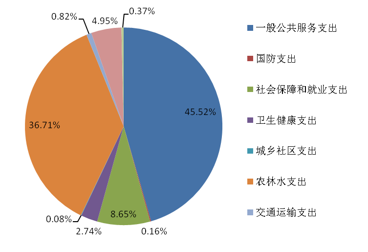2024年度一般公共预算财政拨款支出1216.08万元,主要用于以下方面:一般公共服务支出553.51万元,占45.52%;国防支出2万元,占0.16%;社会保障和就业支出105.21万元,占8.65%;卫生健康支出33.32万元,占2.74%;城乡社区支出1万元,占0.08%;农林水支出446.4万元,占36.71%;交通运输支出10万元,占0.82%;住房保障支出60.21万元,占4.95%;灾害防治及应急管理支出4.42万元,占0.37%。