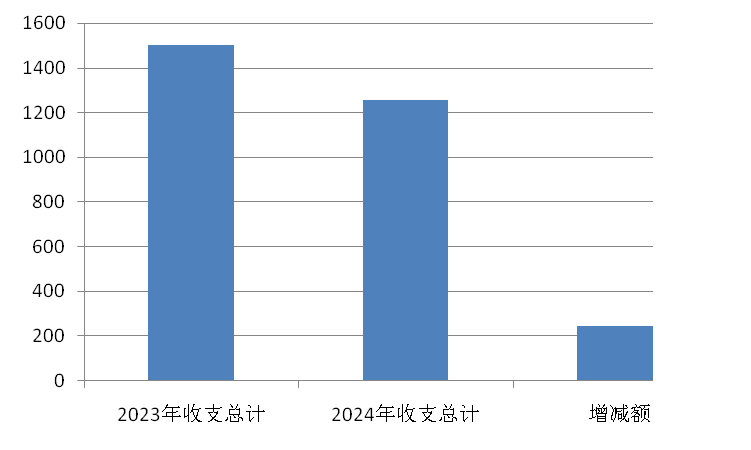 2024年度收、支总计均为1256.08万元。与2023年度相比,收、支总计各增加/减少247.52万元,下降16.46%。主要变动原因是项目资金减少。
