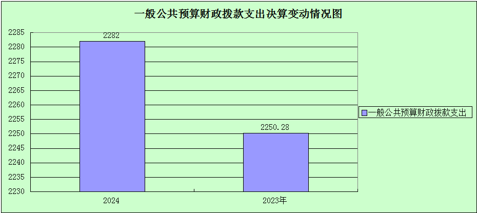 2024年度一般公共预算财政拨款支出2282.00万元,占本年支出合计的98.92%。与2023年度相比,一般公共预算财政拨款支出增加31.72万元,增长1.41%。主要变动原因是项目经费增加。