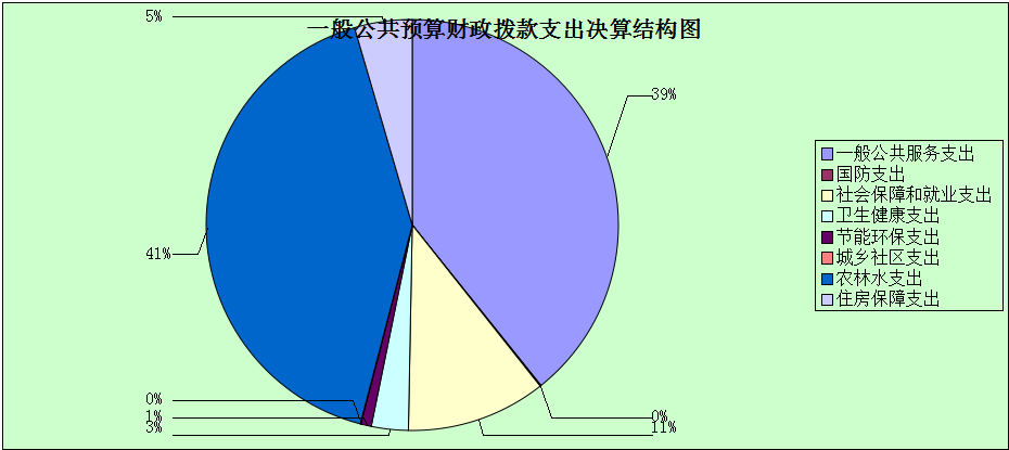 2024年度一般公共预算财政拨款支出2282.00万元,主要用于以下方面:一般公共服务支出896.05万元,占39.27%;国防支出1.86万元,占0.08%;社会保障和就业支出249.92万元,占10.95%;卫生健康支出65.96万元,占2.89%;节能环保支出18.7万元,占0.82%;城乡社区支出1.01万元,占0.04%;农林水支出945.55万元,占41.43%;住房保障支出102.96万元,占4.51%。
