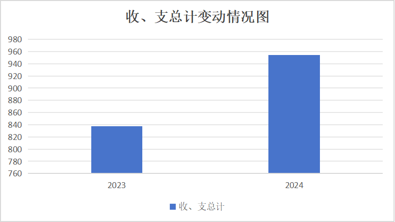 2024年度收、支总计均为954.54万元。与2023年度837.4万元相比,收、支总计各增加117.14万元,上升13.99%。主要变动原因是预算项目增加。