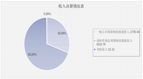 2024年度本年收入合计9112.54万元,其中:一般公共预算财政拨款收入2778.44万元,占30.49%;政府性基金预算财政拨款收入6310.79万元,占69.25%;其他收入23.31万元,占0.26%。