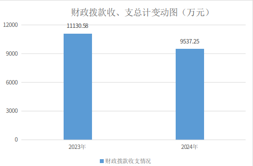 2024年度财政拨款收、支总计均为9537.25万元。与2023年度相比,财政拨款收、支总计各减少1593.33万元,缩减14.31%。主要变动原因是2024 年度项目建设减少。