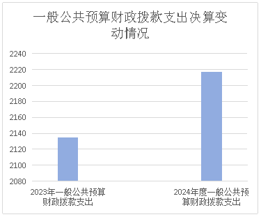 2024年度一般公共预算财政拨款支出2216.67万元,占本年支出合计的97.45%。与2023年度相比,一般公共预算财政拨款支出增加81.85万元,增长3.83%。主要变动原因是村级公共服务经费标注调整。