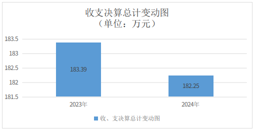 2024年度收、支总计均为182.25万元。与2023年度相比,收、支总计减少1.14万元,减少0.62%。主要变动原因是人员经费减少,新增退休人员。