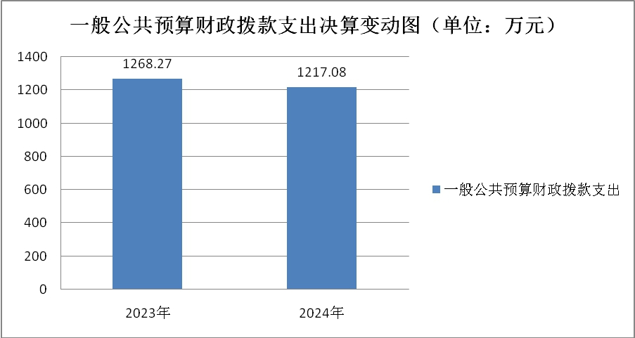 2024年度一般公共预算财政拨款支出1217.08万元,占本年支出合计的100%。与2023年度相比,一般公共预算财政拨款支出减少51.19万元,下降4.04%。主要变动原因是年初预算项目资金减少。