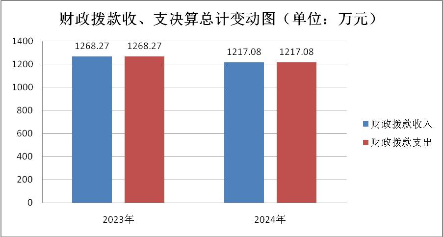 2024年度财政拨款收、支总计均为1217.08万元。与2023年度相比,财政拨款收、支总计各减少51.19万元,下降4.04%。主要变动原因是年初预算项目资金减少。