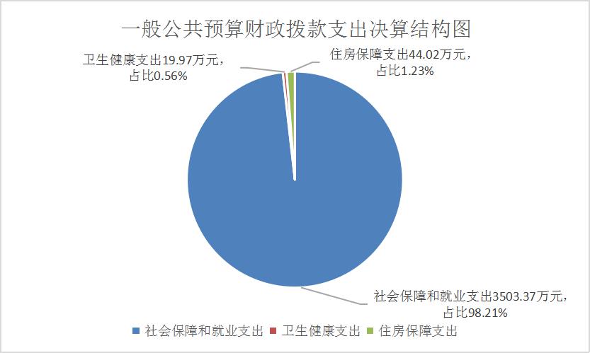 2024年度一般公共预算财政拨款支出3567.36万元,主要用于以下方面:社会保障和就业支出3503.37万元,占98.21%;卫生健康支出19.97万元,占0.56%;住房保障支出44.02万元,占1.23%。