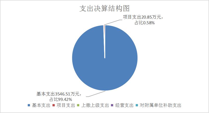 2024年度本年支出合计3567万元,其中:基本支出3546.51万元,占99.42%;项目支出20.85万元,占0.58%。