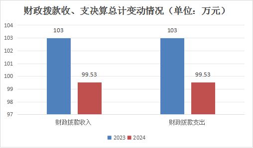 2024年度收、支总计均为99.53万元。与2023年度相比,收、支总计各减少3.47万元,下降3.37%。主要变动原因是人员类经费减少。