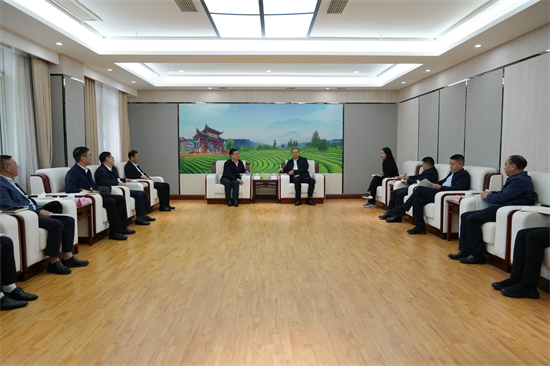 郭金桥对赵何明一行的到来表示欢迎,并详细介绍了旺苍发展优势。他指出,旺苍不仅红色文化底蕴深厚,更拥有突出的自然资源禀赋——矿产资源储量大、品类全,且产业发展基础扎实、门类多元,是极具潜力的投资沃土。当前旺苍正处于转型升级关键期,发展需求与中铁建大桥工程局集团的央企实力、技术优势、丰富经验高度契合,诚挚邀请企业进一步深入旺苍实地考察,精准对接发展需求,找准合作切入点,推动项目尽快落地,实现政企互利共赢。