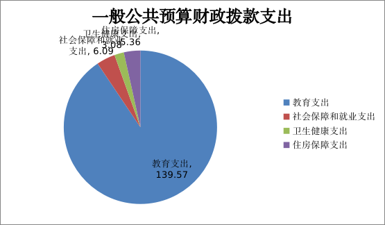 教育支出139.57万元,占68.77%;社会保障和就业支出3.08万元,占23.2%;卫生健康支出13.82万元,占2.46%;住房保障支出29.22万元,占5.45%。