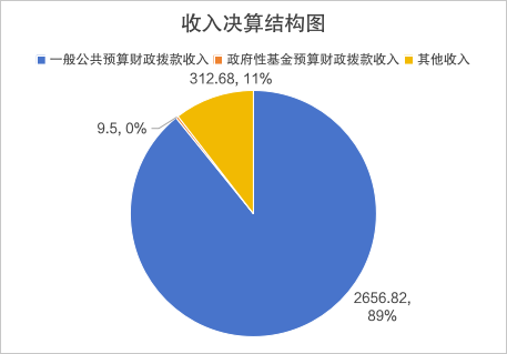 2024年度本年收入合计2979万元,其中:一般公共预算财政拨款收入2656.82万元,占89.18%;政府性基金预算财政拨款收入9.5万元,占0.31%;其他收入312.68万元,占10.49%。