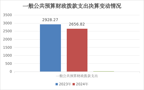 2024年度一般公共预算财政拨款支出2656.82万元,占本年支出合计的89.18%。与2023年度相比,一般公共预算财政拨款支出减少271.45万元,下降9.26%。主要变动原因是教师人数减少,学校厉行节约。