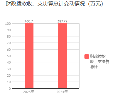 2024年度财政拨款收、支总计均为387.79万元。与2023年度相比,财政拨款收、支总计各减少72.91万元,下降0.16%。主要变动原因是减少了人员编制、义务教育综合奖补、教育扶贫专项等费用。