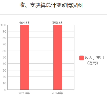 2024年度收、支总计均为390.63万元。与2023年度相比,收、支总计各减少74万元,下降15.93%。主要变动原因是减少了人员编制、义务教育综合奖补、教育扶贫专项等费用。