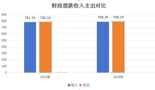 2024年度财政拨款收、支总计均为788.29万元。与2023年度相比,财政拨款收、支总计各增加6.03万元,增长0.77%。主要变动原因是人员经费调标增加。