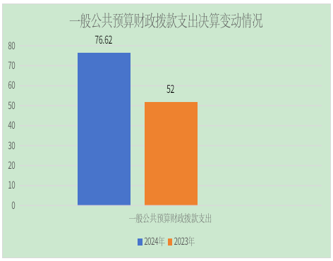2024年度一般公共预算财政拨款支出76.62万元,占本年支出合计的100%。与2023年度相比,一般公共预算财政拨款支出增加24.62万元,增加47.35%。主要变动原因是公务员基础绩效由本单位发放。