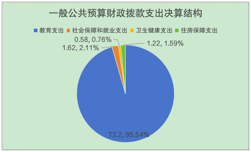 2024年度一般公共预算财政拨款支出76.62万元,主要用于以下方面:;教育支出73.20万元,占95.54%;社会保障和就业支出1.62万元,占2.11%;卫生健康支出0.58万元,占0.76%;住房保障支出1.22万元,占1.59%。