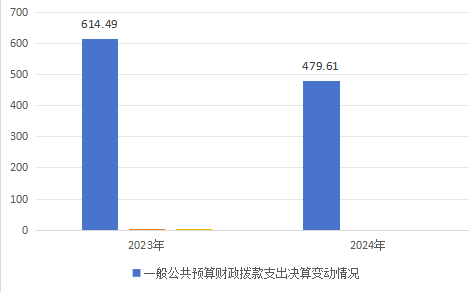 2024年度一般公共预算财政拨款支出479.61万元,占本年支出合计的98.42%。与2023年度相比,财政拨款收、支总计各减少134.88万元,下降21.94%。主要变动原因是减少了财政返还额度和一般公共预算财政拨款收入。