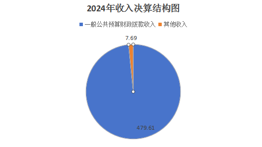 2024年度本年收入合计487.3万元,其中:一般公共预算财政拨款收入479.61万元,占98.42%;其他收入7.69万元,占1.57%。