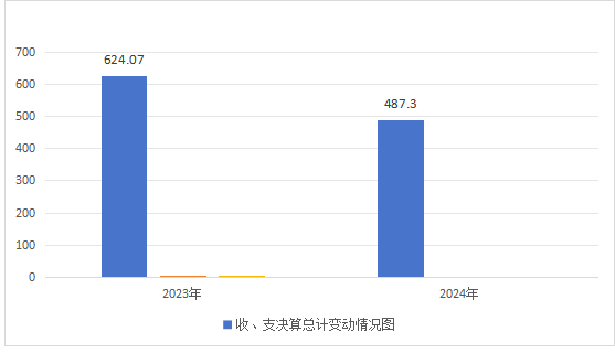 2024年度收、支总计均为487.3万元。与2023年度相比,收、支总计各减少136.77万元,下降21.92%。主要变动原因是减少了财政返还额度和一般公共预算财政拨款收入。