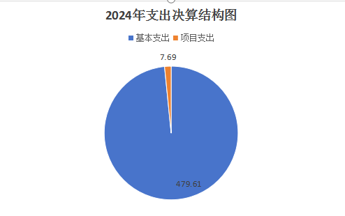 2024年度本年支出合计487.3万元,其中:基本支出473.79万元,占97.22%;项目支出13.52万元,占2.77%。