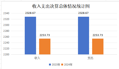 2024年度收入、支出均为2253.73万元。与2023年收入、支出2328.67万元相比,减少74.94万元,减少3.33%。支出2253.73万元,减少74.94万元,减少3.33%。主要变动原因是学校改扩建工程接近尾声,财政减少了专项资金的投入。