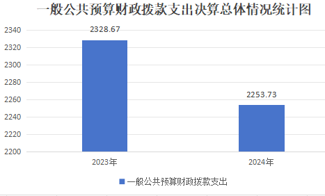 2024年一般公共预算支出决算数为2253.73万元,完成预算100%。其中: