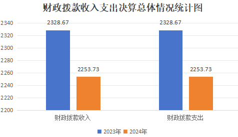 2024年财政拨款收入2253.73万元、支出2253.73万元。与2023年收入2328.67万元相比减少74.94万元,减少3.33%。与2023年支出2328.67万元相比减少74.94万元,减少3.33%。主要变动原因是学校改扩建工程接近尾声,财政减少了专项资金的投入。