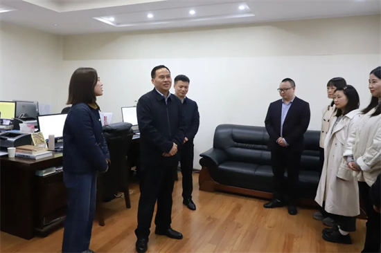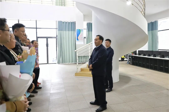 在县融媒体中心,杨祖斌一行参观了演播室、后期制作中心、新媒体办公室等功能场所,听取了媒体融合发展、新闻采编发、电视安全播出等情况汇报,与一线新闻工作者亲切交谈,为他们送上鲜花和节日祝福。杨祖斌指出,近年来,县融媒体中心认真贯彻落实习近平总书记关于新闻舆论工作的重要论述,深入推进媒体融合发展,推出了一大批有思想、有温度、有品质的栏目和作品,有效传播了旺苍声音、讲好了旺苍故事,生动展现了旺苍经济发展、社会建设、民生保障等领域的精彩画面和丰硕成果。他强调,要进一步提高政治站位,牢牢把握正确政治方向和舆论导向,旗帜鲜明唱响主旋律、弘扬正能量、振奋精气神,为旺苍高质量发展持续注入精神动力、凝聚奋进力量。要进一步做好宣传工作,紧跟新媒体传播发展趋势,创新节目策划理念、制作模式、传播形式,小切口、多角度挖掘工业、文旅、乡村振兴等领域的鲜活素材,推出导向正确、主题鲜明、形式多样的优秀新闻作品,不断提升旺苍知名度和影响力。要进一步建强宣传队伍,建立“老带新”帮扶机制,定期开展业务培训,完善工作激励保障机制,努力打造一支政治过硬、本领高强、求实创新、能打胜仗的宣传思想文化工作队伍。