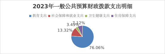 2024年一般公共预算财政拨款支出1466.03万元,主要用于以下方面:教育支出1168.13万元,占79.68%;社会保障和就业支出89.01万元,占6.07%;卫生健康支出47.86万元,占3.26%;住房保障支出89.01万元,占6.07%。