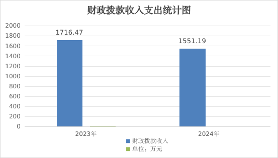 2024年度收、支总计均为1551.19万元,与2023年相比,收入支出各减少165.28万元、减少9.63%,主要变动原因是人员经费收支减少。
