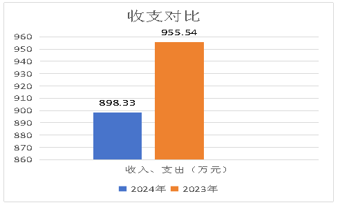 2024年度收入、支出总计均为898.33万元。与2023年度相比,收入、支出总计各减少57.21元,下降5.99%。主要变动原因是减少了大型修缮。