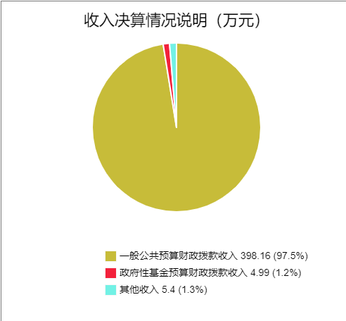 2024年本年收入合计408.55万元,其中:一般公共预算财政拨款收入398.16万元,占97.46%;政府性基金预算财政拨款收入4.99万元,占1.22%,其他收入5.4万元,占1.32%。