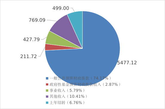 2024年本年收入合计7384.72万元,其中:一般公共预算财政拨款收入5477.12万元,占74.17%;政府性基金预算财政拨款收入211.72万元,占2.87%;国有资本经营预算财政拨款收入0万元;上级补助收入0万元;事业收入427.79万元,占5.79%;经营收入0万元;附属单位上缴收入0万元;其他收入769.09万元,占10.41%;使用上年结转499万元,占6.76%。