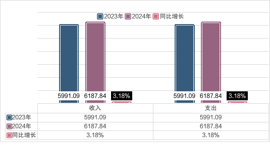 2024年度财政拨款收、支总计均为6187.84万元。与2023年度财政拨款收入支出5991.09万元相比,财政拨款收、支总计各增加196.75万元,增长3.18%。
