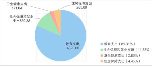 2024年一般公共预算财政拨款支出5976.12万元,主要用于以下方面:教育支出4859.06万元,占81.31%;社会保障和就业支出680.38万元,占11.38%;卫生健康支出171.04万元,占2.86%;住房保障支出265.69万元,占4.45%。