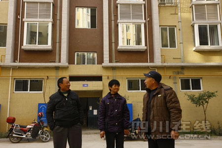 图为新入住旺苍县四期廉租房马家梁小区的居民在拉家常。(王腾 摄)