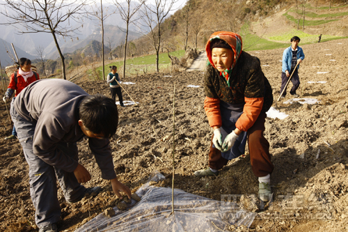 据介绍,去年2月,该乡采取农户以土地入股的方式成立了核桃专业合作社,全乡70%的耕地都变成了核桃园,其中绿化村68户村民把自家的480亩土地全部流转给合作社发展薄皮核桃。