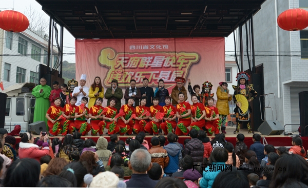 1月16日,由省文化厅主办、省文化馆承办的“天府群星快车?送欢乐下基层”演出活动走进旺苍县黄洋镇,为当地群众送上新春的祝福与欢乐。