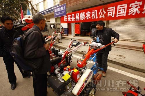 在农机展示点,木门镇茶园村7组村民孙斌告诉记者,他家有10亩土地,几年前就买了台耕田机,今天来看看,打算再买一台新的。“牛儿耕几天,机器耕一天。现在10亩土地我家3个人就能耕种,多亏了现代农机帮忙哦!”他说,“现在买农机,国家还有补贴,用不了多少钱就可以买个‘铁牛’呢!”