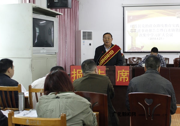 4月21日,笔者在旺苍县白水镇举行的党的群众路线教育实践活动先进典型人物报告会上了解到,为了扎实推进群教活动深入开展,增强广大党员干部贯彻群众路线的使命感和责任感,进一步发挥先进典型的示范带动作用,该县组建了由10名来自全县各行业各领域的先进典型人物组成的群线活动报告团,在全县开展巡回报告活动。