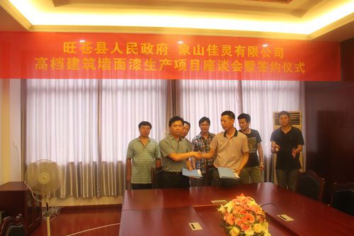 在实地考察了象山佳灵服饰和象山中旭涂料后,双方就20000吨/年高端建筑墙面漆生产项目进行了深入洽谈和友好磋商,在互利共赢的基础上,双方达成了合作共识,签订了投资协议书,项目总投资1.2亿元,建成后销售收入达6亿元,年利税3000万元,新增就业1200人。