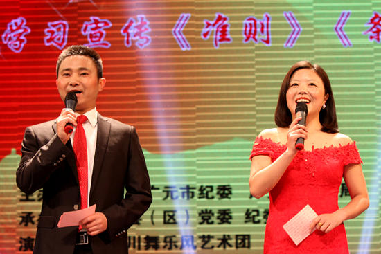 3月1日,名为“蜀道清风”的广元市学习宣传《中国共产党廉洁自律准则》和《中国共产党纪律处分条例》文艺巡演活动在我县举行。县领导赵俊科、王尔敏、张皓良、张健、陈三勇、张宽生、杨忠以及县法院、检察院、经开区、县级相关部门、乡镇(管理办)等负责人观看了演出。