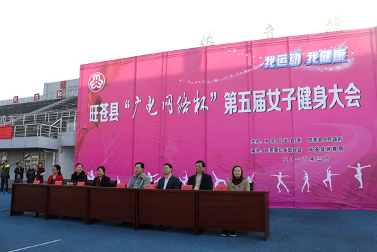 3月3日,由县委、县政府主办,县妇联、县体育局承办的“广电网络杯”第五届女子健身大会在县文体中心举行,活动旨在共同庆祝第106个“三八”国际劳动妇女节,激发广大妇女群众干事创业的热情,锐意进取,开拓创新,服务决胜全面建成小康社会,为建设“绿谷红城、幸福旺苍”贡献力量。县委常委、宣传部长王苏兵致辞,县人大常委会副主任陈三勇,县政协副主席张宽生出席,县政协副主席彭钚主持开幕式。